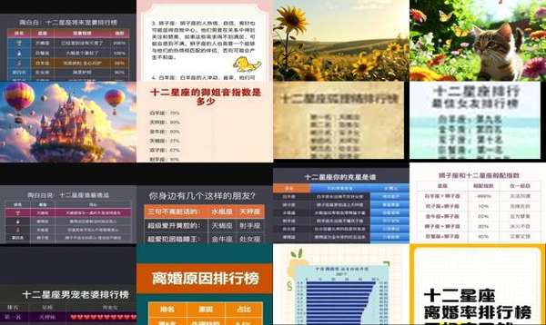 隨著大數(shù)據(jù)技術(shù)的發(fā)展,人們開始運(yùn)用數(shù)據(jù)分析手段來研究星座與婚姻關(guān)系的有趣現(xiàn)象。以下是根據(jù)最新數(shù)據(jù)分析得出的星座婚戀趨勢報告: